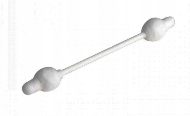 Kształt bawełnianej części patyczka z ogranicznikiem zapewnia bezpieczne użytkowanie.