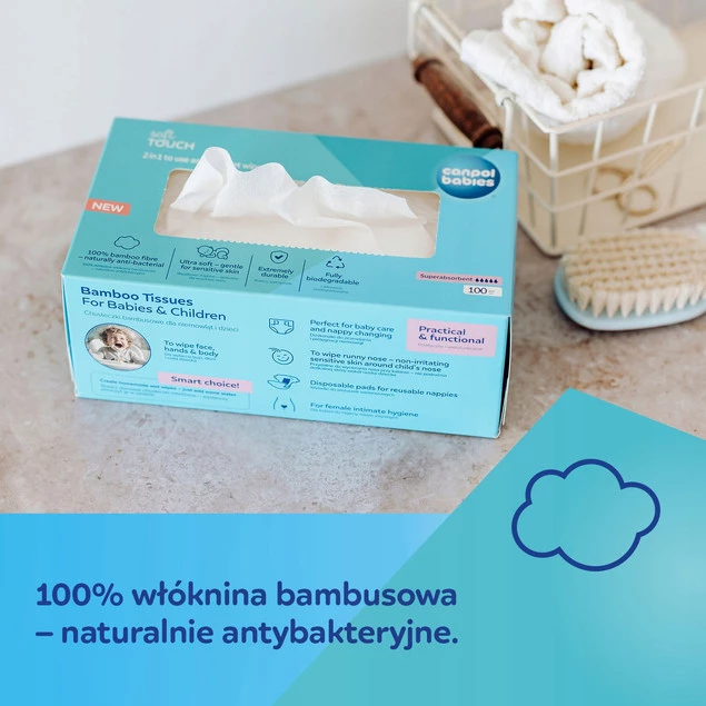 ![]() | 100% delikatna włóknina bambusowa – naturalnie antybakteryjna. |