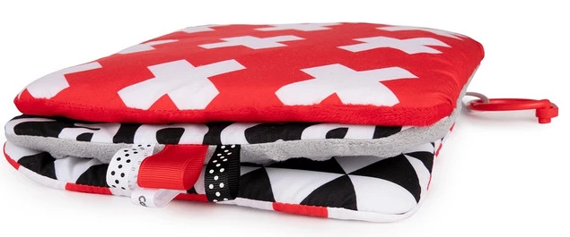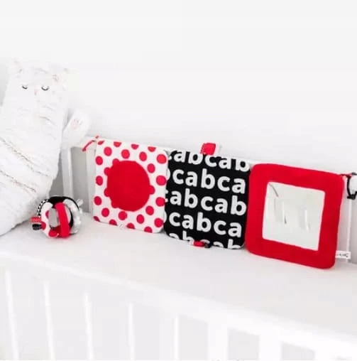 Kontrastowe lusterko z kolekcji SENSORY TOYS posiada elementy interaktywne, które zajmą dziecko na długi czas. Wspiera rozwój maluszka już od pierwszych dni. Stymuluje wzrok dzięki czerwieni i czerni, kolorom które niemowlę widzi jako pierwsze. Trenuje zdolności motoryczne i manualne, dzięki różnym fakturom i wystającym tasiemkom. Lusterko zachęci do przebywania na brzuszku i podnoszenia główki. Można je postawić na podłodze pod specjalnym kątem, który umożliwia maluszkowi obserwowanie otoczenia. Dodatkowe możliwości dają specjalne zaczepy, dzięki którym można zamontować zabawkę do łóżeczka lub do maty sensorycznej marki Canpol babies. Zabawka jest miękka i miła w dotyku, przeznaczona dla dzieci w wieku 0m+. Lusterko wykonane z materiału bezpiecznego dla dzieci.