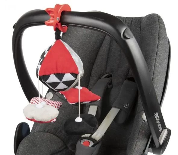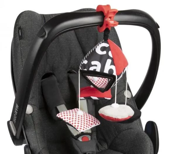 Kontrastowa karuzelka podróżna z kolekcji SENSORY TOYS kryje wiele niespodzianek, które zajmą dziecko na długi czas. Wspiera rozwój maluszka już od pierwszych dni. Stymuluje wzrok dzięki czerwieni i czerni, kolorom które niemowlę widzi jako pierwsze. Karuzelka doskonale stymuluje też rozwój koordynacji wzrokowo-słuchowej i motorycznej dziecka. Posiada dzwoneczek, elementy szeleszczące oraz grzechotki. Dodatkową atrakcją są dwa lusterka - każde dziecko lubi przeglądać się i obserwować świat. Karuzelka będzie doskonałym towarzyszem spacerów i podróży, dzięki wygodnemu zaczepowi, który pozwoli zamontować ją do fotelika, wózka, łóżeczka, a także jako dodatkowy element do maty sensorycznej Canpol babies. Magnesy w zabawkach pozwalają na odczepienie elementów, dzięki czemu dziecko ma dodatkową zabawkę w postaci grzechotki. Jest miękka i miła w dotyku, przeznaczona dla dzieci 0m+.