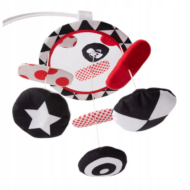 Kontrastowa karuzela z pozytywką z kolekcji SENSORY TOYS kryje wiele niespodzianek, które zajmą dziecko na długi czas. Wspiera rozwój maluszka już od pierwszych dni. Stymuluje wzrok dzięki czerwieni i czerni, kolorom które niemowlę widzi jako pierwsze. Karuzela doskonale stymuluje rozwój koordynacji wzrokowo-słuchowej i motorycznej dziecka.