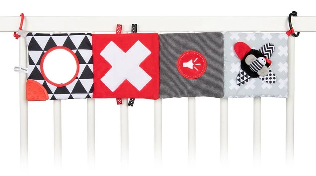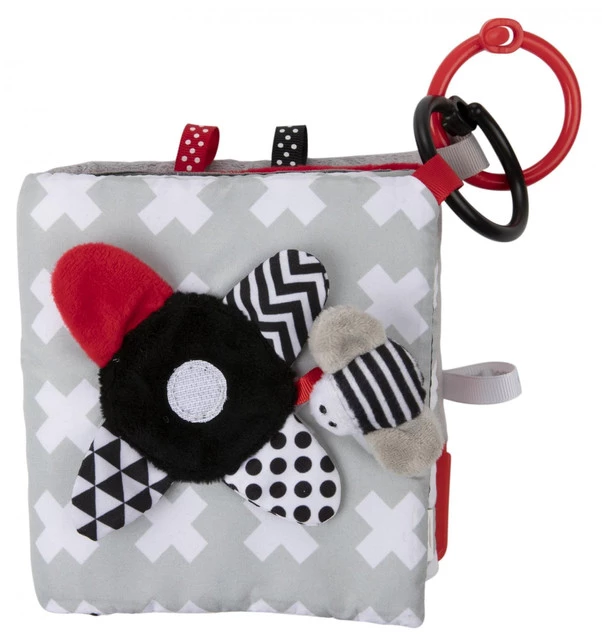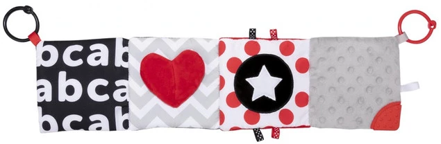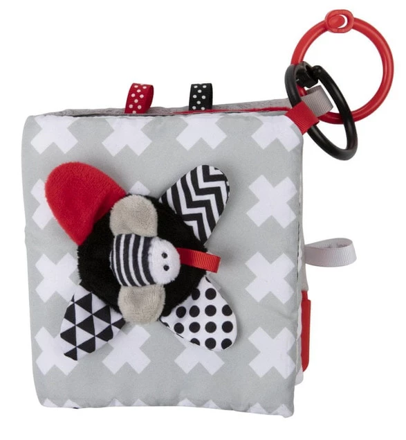 Kontrastowa książeczka edukacyjna z kolekcji SENSORY TOYS kryje wiele niespodzianek, które zajmą dziecko na długi czas. Wspiera rozwój maluszka już od pierwszych dni. Stymuluje wzrok dzięki czerwieni i czerni, kolorom które niemowlę widzi jako pierwsze. Książeczka doskonale stymuluje rozwój koordynacji wzrokowo-słuchowej i motorycznej dziecka. Zabawka jest idealna do nauki chwytania i odkrywania ciekawych nowych dźwięków. Zabawna pszczoła na rzep, pozwala na trenowanie odczepiania i przyczepiania elementów przez maluszka. Posiada gryzak, piszczek, grzechotkę oraz elementy szeleszczące i liczne tasiemki. Dodatkową atrakcją jest ukryte lusterko - każde dziecko lubi przeglądać się i obserwować świat. Praktyczne zaczepy umożliwią przypięcie zabawki przy wózku lub łóżeczku, pozwalają też stworzyć zestaw z matą sensoryczną marki Canpol babies. Książeczka jest miękka i miła w dotyku. Przeznaczona dla dzieci 0m+.