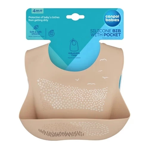 CANPOL Śliniaczek Śliniak Sylikonowy Z Kieszonką Beżowy 6M+ 51/030_6