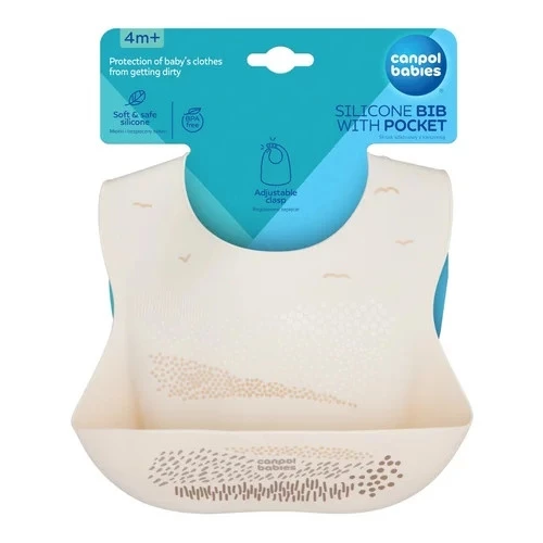 CANPOL Śliniaczek Śliniak Sylikonowy Z Kieszonką Kremowy 6M+ 51/030_1