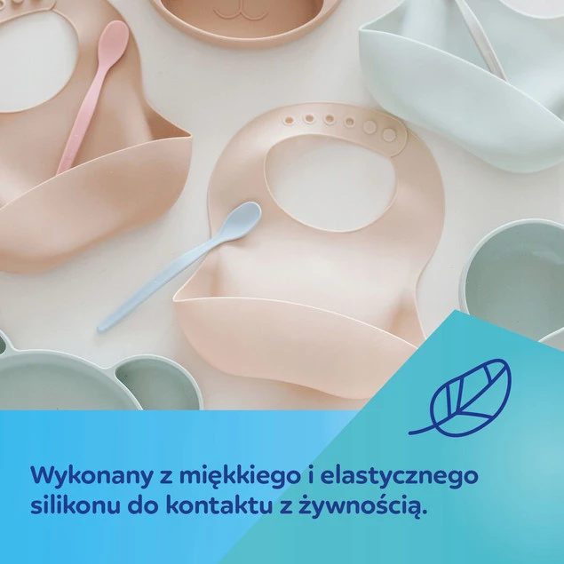 Wodoodporny śliniak silikonowy z kieszonką jest niezbędny podczas rozszerzania diety Maluszka i pierwszych samodzielnych posiłkach. Doskonale zabezpieczy ubranko dziecka przed zabrudzeniem i przemoczeniem podczas jedzenia. Jest lekki, miękki, elastyczny i przyjemny w dotyku. Został wykonany w 100% z wysokiej jakości silikonu przeznaczonego do kontaktu z żywnością, dzięki czemu jest bezpieczny i bezzapachowy. Praktyczna głęboka kieszonka zatrzymuje resztki jedzenia, które nie trafiło do buzi dziecka. Kieszonka jest tak zaprojektowana, aby wypełniona jedzeniem zachowała swój kształt i dziecko nie opróżniło jej przez przypadek podczas poruszania się czy naciskania na nią. Śliniak jest łatwy do czyszczenia – można przepłukać go pod bieżącą wodą, przetrzeć lub umyć w zmywarce.