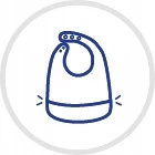 Śliniak utrzymuj w czystości. Myj w ciepłej wodzie z delikatnym środkiem myjącym, dokładnie wypłucz. Polej wrzątkiem. Śliniak można myć w zmywarce.