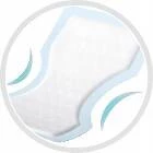 Superchłonny wkład szybko wchłania płyny i zatrzymuje wilgoć wewnątrz podkładu. Miękka i całkowicie oddychająca naturalna warstwa zewnętrzna nie rozwarstwia się i nie przywiera do skóry, dzięki czemu umożliwia swobodny przepływ powietrza i chroni przed podrażnieniami. Szeroki pasek samoprzylepny utrzymuje podkład we właściwym miejscu.