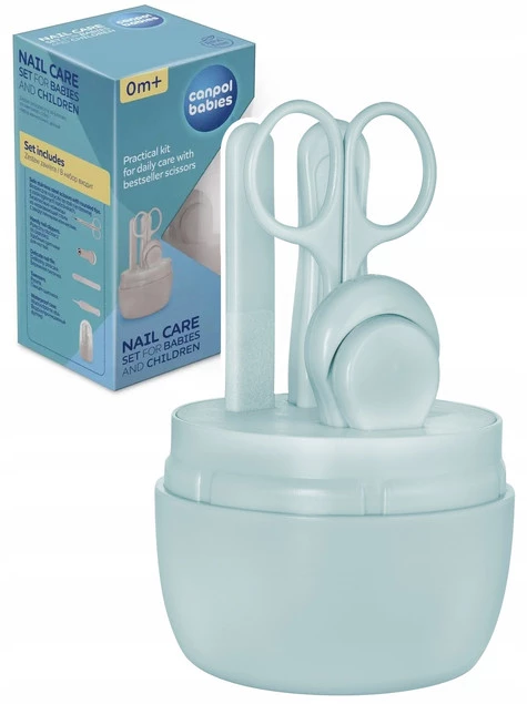 Kompletny zestaw do paznokci dla niemowląt zapakowany w praktyczne wodoodporne etui, które umożliwia higieniczne przechowywanie oraz przenoszenie. Zestaw do obcinania paznokci dla niemowląt składa się z 4 elementów – nożyczki, poręczny obcinacz do paznokci, delikatny pilniczek i pęseta. Bestsellerowe nożyczki ze stali nierdzewnej i cążki pomogą skutecznie i bezpiecznie obciąć paznokcie dziecku. Zaokrąglone końcówki nożyczek zapobiegają skaleczeniu. Delikatny pilniczek pomoże usunąć nierówności paznokcia chroniąc dziecko przed zadrapaniem. Canpol zestaw do paznokci dla niemowląt i dzieci jest dostępny w dwóch wersjach kolorystycznych. Canpol zestaw do pielęgnacji paznokci dla niemowląt jest bezpieczny dla dzieci od pierwszych dni życia.