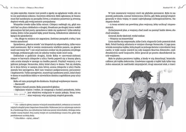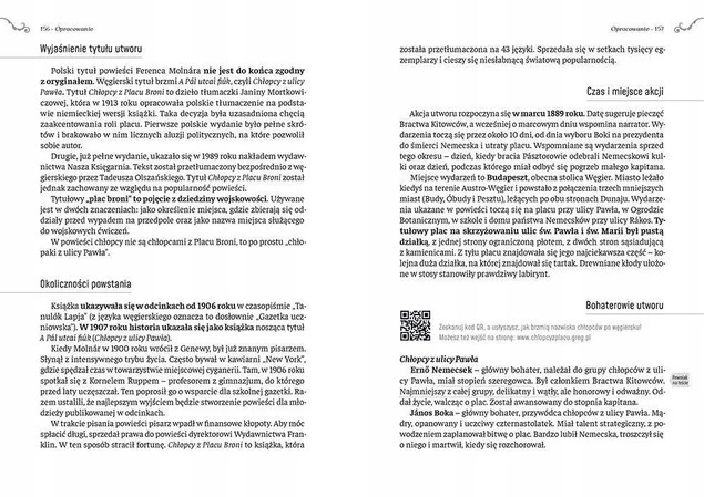 ✔ Wydanie Chłopców z Placu Broni od Wydawnictwa Greg to nie tylko nowe tłumaczenie i rzetelne opracowanie, ale także wyjątkowe ilustracje Mikołaja Kamlera. Książkę wyróżnia oryginalny zapis imion, nazwisk i nazw miejscowych oraz towarzyszące mu przypisy z zapisem wymowy, a także nagrania dostępne online, dzięki którym można usłyszeć, jak nazwy własne brzmią po węgiersku.