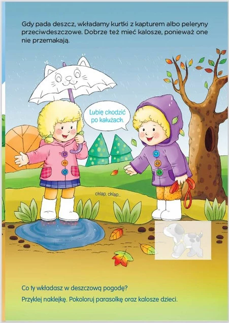W co się ubrać, gdy świeci słonko, a w co, gdy pada śnieg? A także zachowanie w sklepie, w lesie, parku czy zoo, czyli scenki o tym, co powinno wiedzieć każde dziecko.
