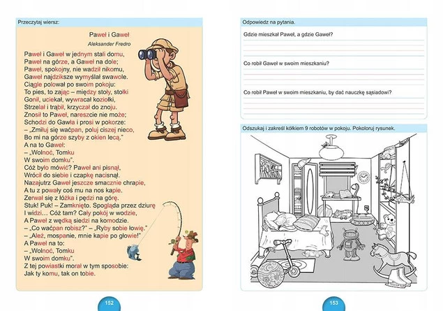 Druga część ćwiczeń zawiera czytanki do czytania metodą sylabową oraz wiersze dla dzieci wraz z zadaniami do nich. Dzięki nim dzieci uczą się czytania ze zrozumieniem oraz ćwiczą pisanie. Łamigłówki zapewnią mnóstwo wspaniałej zabawy, a piękne, kolorowe ilustracje uprzyjemnią pracę z książką.