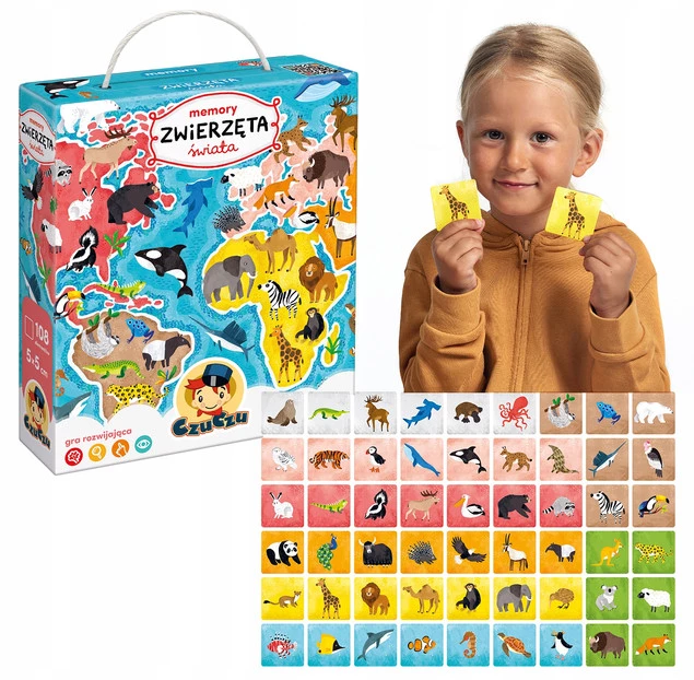 Ćwiczcie umysł, trenujcie pamięć i doskonalcie koncentrację! CzuCzu Mempory Zwierzęta świata to ponadczasowa gra dla dzieci i dorosłych – sprawdzi się jako układanka dla najmłodszych i pierwsza gra, podczas rozgrywek w grupie przedszkolnej i w trakcie spotkania z przyjaciółmi. Zawsze i wszędzie jest czas na odrobinę wesołej zabawy! Elementy możecie wykorzystać do mnóstwa kreatywnych zabaw, których poziom trudności z łatwością dostosujecie do wieku i zainteresowań uczestników.