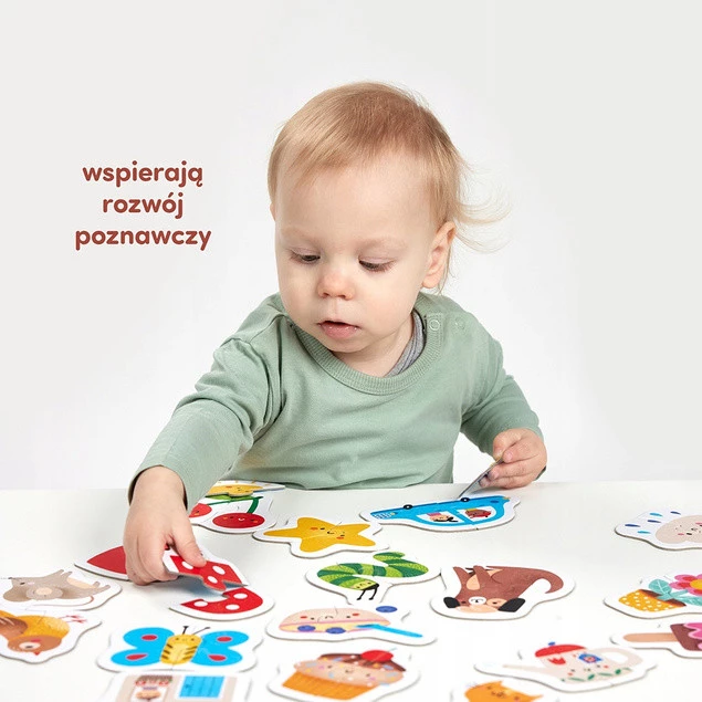 Hej, roczniaki! Czas na pierwsze puzzle! Moje pierwsze puzzle Do pary to wyjątkowo uroczy zestaw dla dzieci, które zaczynają przygodę z puzzlami. Składa się aż z 19 kolorowych, dwuelementowych układanek. Układanie to wyzwanie, ale każde dopasowanie elementów to powód do dumy. Zabawa start!
