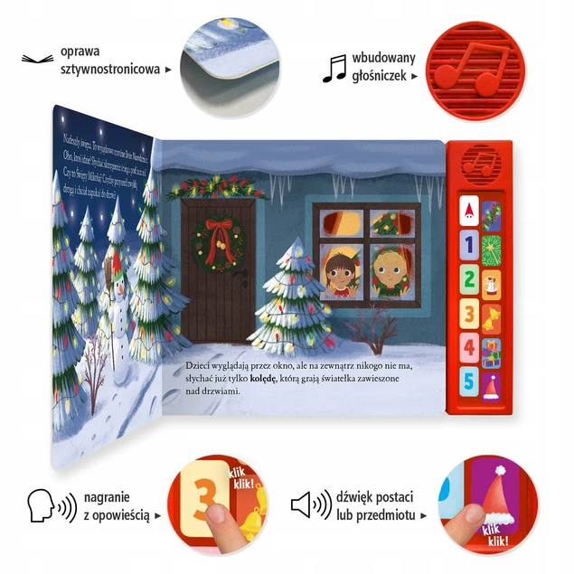 Seria „Czytamy i Słuchamy” to ilustrowane opowiadania dla najmłodszych wzbogacone o panel dźwiękowy. Naciskanie guziczków z obrazkami pozwala poznać dźwięki wydawane przez postaci lub przedmioty. Przyciski z numerami stron uruchomią nagranie z opowieścią czytaną przez lektora.