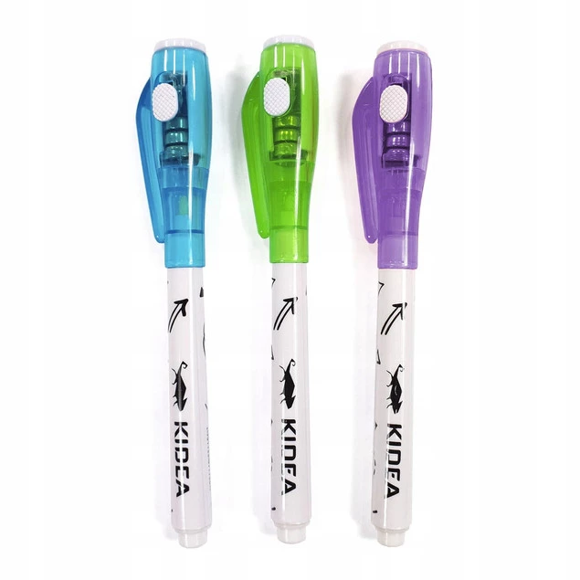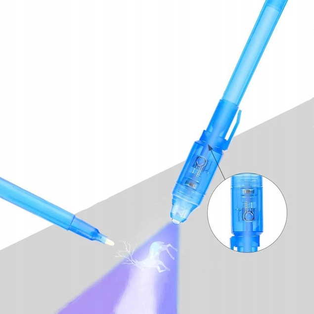 Zapisana wiadomość nie będzie widoczna, dopóki nie użyjesz specjalnej latarki UV, znajdującej się na końcu długopisu. Tylko ty będziesz mógł odczytać, to, co zapisałeś! Czy nie brzmi to wspaniale i tajemniczo? Twoje sekrety będą bezpieczne z tym niesamowitym, magicznym długopisem.