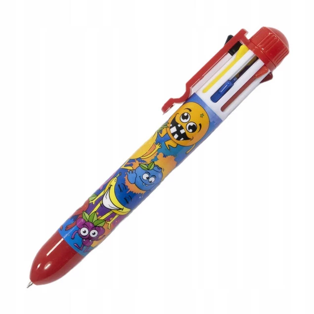 Długopis zapachowy z wkładami w ośmiu intensywnych kolorach: czarnym, niebieskim, zielonym, pomarańczowym, czerwonym i fioletowym. Jego dodatkowym atutem są słodkie, przyjemne zapachy każdego z kolorów, które uatrakcyjniają produkt i sprawiają, że dzieci chętniej po niego sięgają. Jego precyzyjna końcówka ułatwia pisanie oraz dokładne wyróżnienie odpowiednich fragmentów tekstu. Funkcja 8 w 1 sprawia, że jest on niezbędny w piórniku każdego dziecka, a zajmuje tak niewiele miejsca.