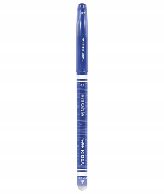 Niebieski długopis wymazywalny idealnie sprawdzi się w szkole, ponieważ gumką, którą jest zakończony, można wymazać każdy popełniony podczas pisania błąd. Elegancki design oraz precyzyjna końcówka sprawiają, że pisanie nim to czysta przyjemność.