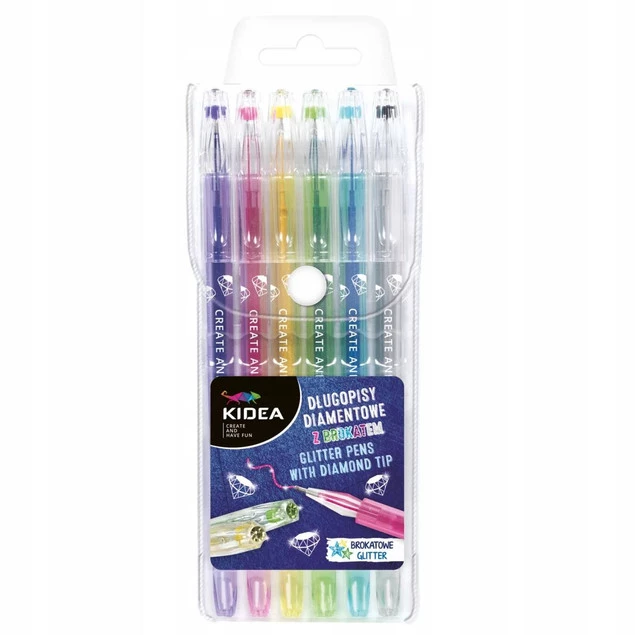 Długopisy Żelowe Szkolne Diamentowe Z Brokatem 6 Kolorów Kidea DDB6KA