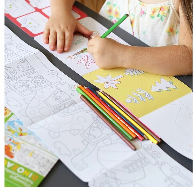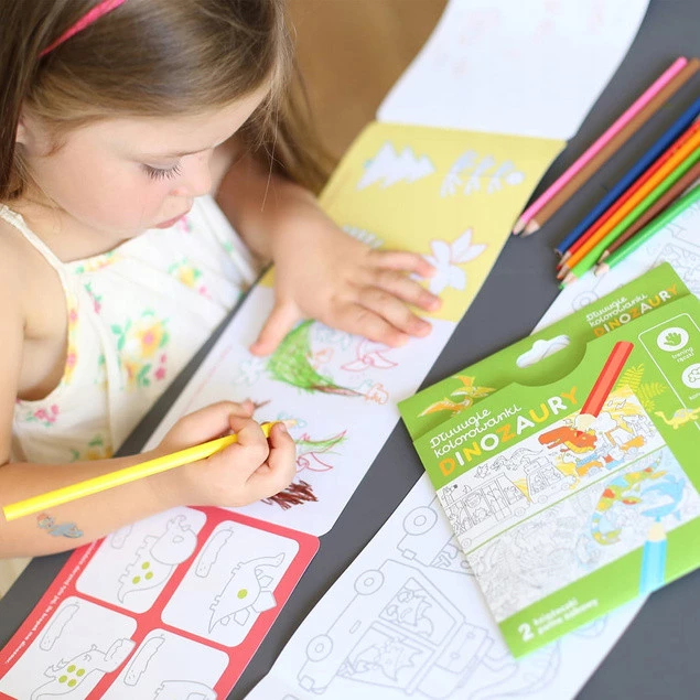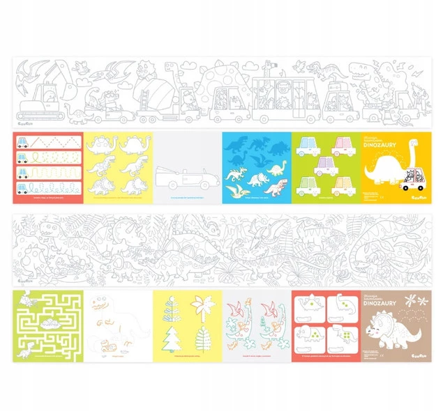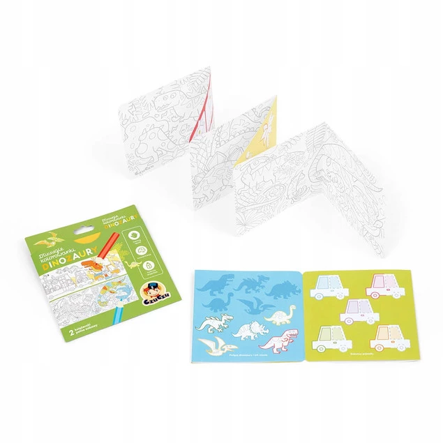 Kredki w dłoń, czas kontynuować przygodę z kolorowaniem. Dinozaury zapraszają do twórczej zabawy. Kreatywny zestaw zawiera 2 długie książeczki harmonijki z 2 panoramicznymi kolorowankami oraz mnóstwem kreatywnych i edukacyjnych zadań.