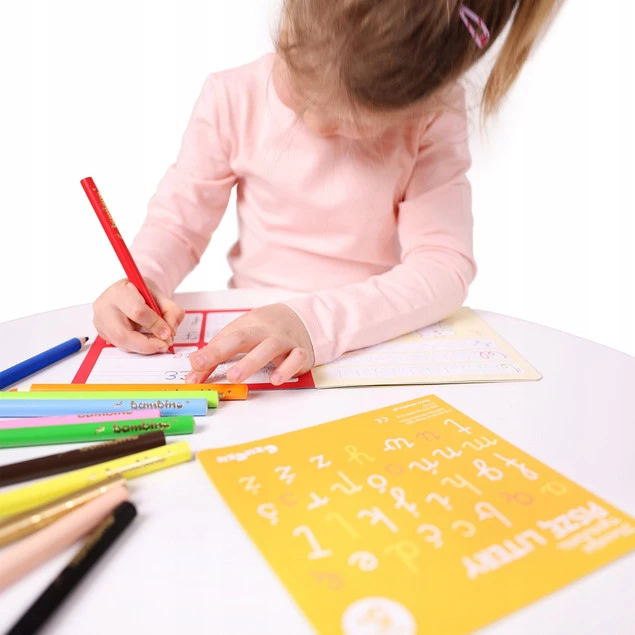 Edukacyjny zestaw zawiera 2 długie książeczki harmonijki, które zachęcają dzieci poznawania liter i podejmowanie prób pisania. Ciekawe zadania i kolorowe ilustracje pokazują, że nauka liter i ćwiczenia doskonalące rękę mogą być fascynująca zabawą. Książeczki przedstawiają litery pisane z polskiego alfabetu.