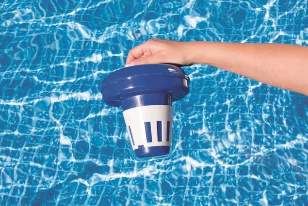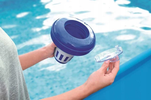 Pływający dozownik może być stosowany z tabletkami 2,5 cm lub 7,6 cm. Dozowanie środka chemicznego do basenu należy ręcznie sterować pierścieniem dozującym. Chemię należy włożyć do środka, a następnie wrzucić pływak do wody. Wykonanie pływającego dozownika z tworzywa odpornego na promieniowanie UV pozwala na jego stosowanie przez wiele sezonów, a jego lekkość powoduje, że swobodnie dryfuje, rozpuszczając środki chemiczne, dzięki czemu rozprowadza je po całej powierzchni.