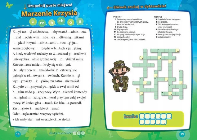 ✔Sprawdzić się można na dwa sposoby - w książce są zamieszczone dyktanda do samodzielnego uzupełniania oraz do pisania ze słuchu. Oderwać się od pracy można poprzez ciekawe krzyżówki zamieszczone przy dyktandach. Zabawne teksty, kolorowe ilustracje uprzyjemniają naukę. To najlepsza seria do nauki ortografii!
