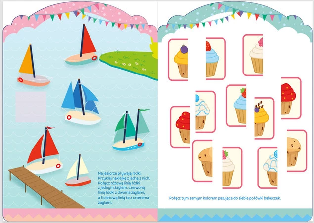 Baw się: znajduj i wklejaj naklejki, odszukuj ukryte obrazki, łącz elementy, licz i twórz zbiory, pokonuj labirynty, rysuj po śladzie, koloruj.