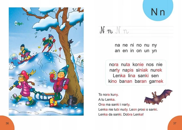 Elementarz - czytamy bajki metodą sylabową to książka doskonała dla każdego dziecka, które chce nauczyć się czytać. Zastosowano w niej metodę sylabową, która jest popularna od lat i niezwykle skuteczna. Dzięki niej już kilkuletnie maluchy zdobywają umiejętność czytania! Dziecko poznaje literki, następnie składa z nich sylaby, by przejść do odczytywania wyrazów i całych zdań. Poziom trudności wzrasta stopniowo, dzięki czemu nauka czytania jest szybka i bezproblemowa, a dziecko czyta płynnie i ze zrozumieniem.