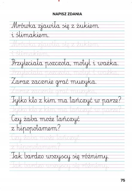 - ćwiczenia wprowadzające – proste zadania, które pomagają dziecku zrozumieć podstawowe zasady pisania,