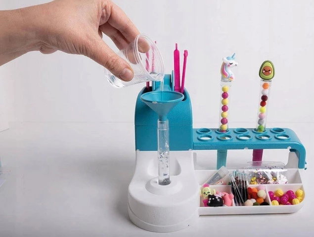 Oryginalne kreatywne laboratorium do zabawy przy tworzeniu mnóstwa kolorowych długopisów! Nowy zestaw Idea, który pozwala dzieciom tworzyć i personalizować długopisy za pomocą wielu akcesoriów i dekoracji. Podręczny blat do ćwiczeń i bogaty zestaw instrumentów wspomagających zabawę daje niesamowity efekt! Dzieci będą mogły zrobić znacznie więcej niż tylko personalizację długopisu: zaangażują się w prawdziwy twórczy wysiłek! Opracowany i zaprojektowany we Włoszech.