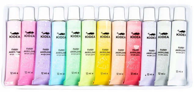 Opinie o Farby Akrylowe PASTELOWE 12 Sztuk x 12ml Kidea