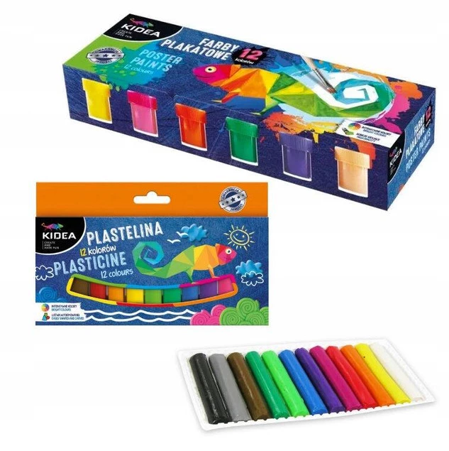Farby Szkolne Plakatowe + Plastelina 12 Kolorów Kidea