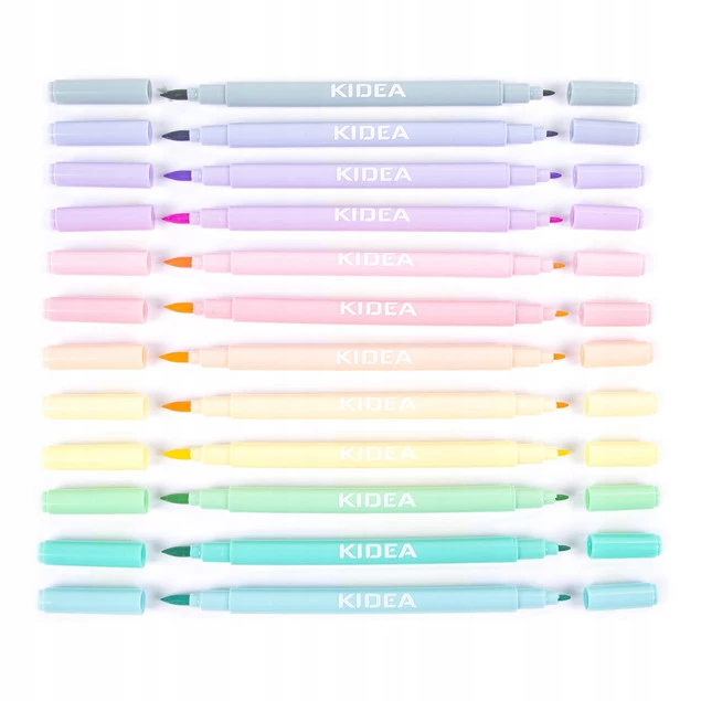 Zdecydowanie pokochaliście pastelową kolekcję KIDEA, a więc czas przedstawić Wam naszą kolejną NOWOŚĆ!Zestaw 12 dwustronnych flamastrów w delikatnych pastelowych kolorach. Dwie końcówki o różnych formach, pozwolą na uzyskanie kresek o rozmaitych grubościach.
