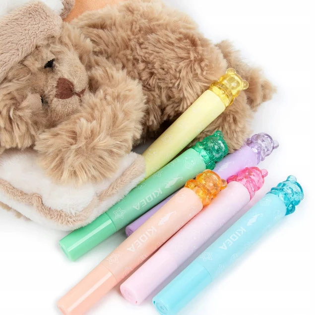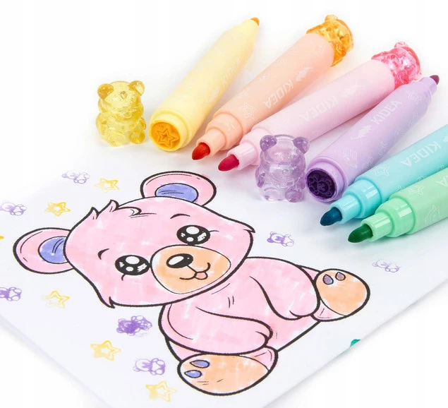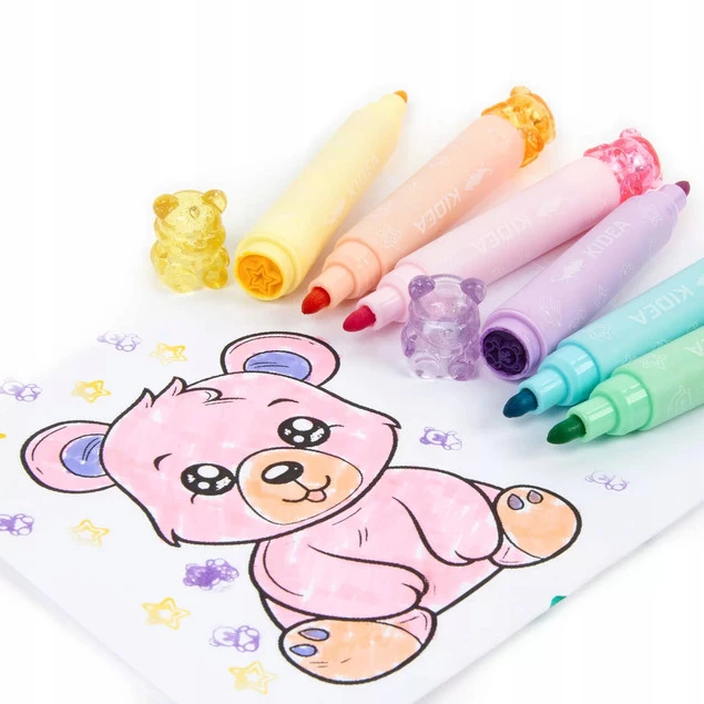 Flamastry Dwustronne Ze Stempelkami Misie 6 szt. PASTELOWE Kidea FSM6KA_1
