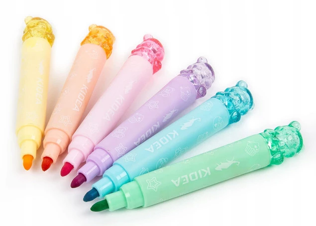 Flamastrom dodatkowego uroku dodają brokatowe zakrętki w kształcie misiów. Dzięki kompaktowym rozmiarom, pastelowe flamastry zmieszczą się w każdym piórniku. Idealnie sprawdzą się do podkreślania, rysowania czy dekorowania prac plastycznych.