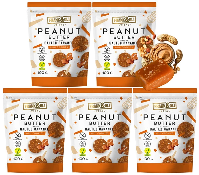 FRANK&OLI Ciasteczka Mini MASŁO ORZECHOWE SŁONY KARMEL Białko 100g x5