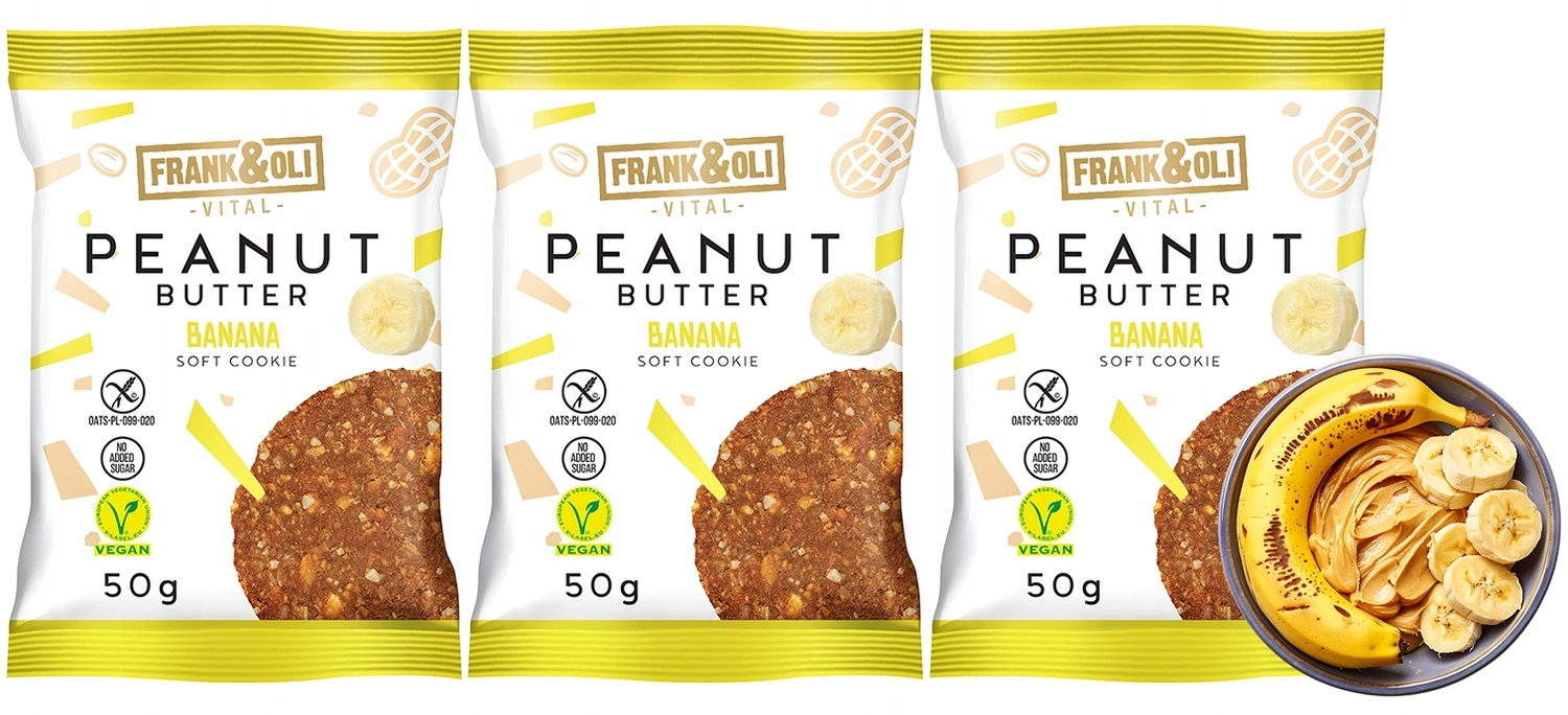 FRANK&OLI Ciastko Miękkie PASTA ORZECHOWA BANAN 50g x3