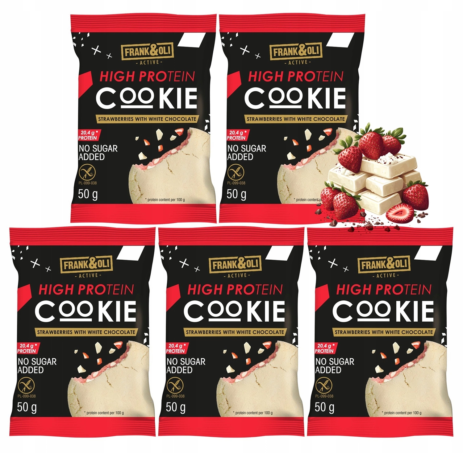 FRANK&OLI Ciastko Proteinowe TRUSKAWKA BIAŁA CZEKOLADA 50g x5