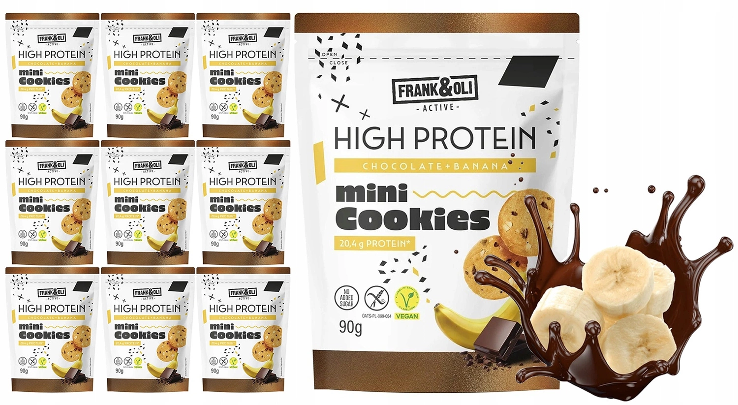 FRANK&OLI Mini Ciasteczka PROTEINOWE High Protein BANAN CZEKOLADA 90g x9
