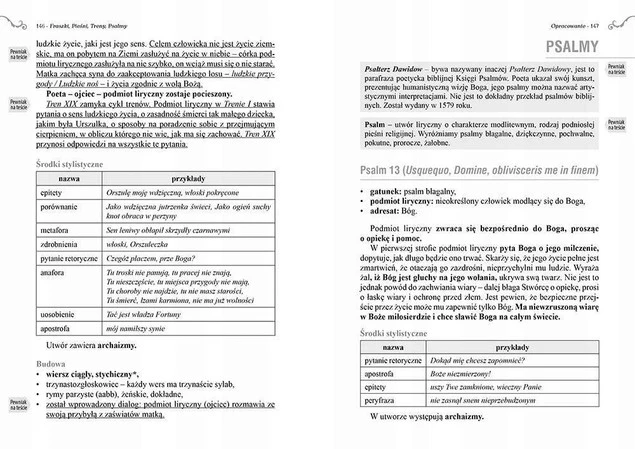 ✔Fraszki zachwycają kunsztem, bawią, a niektóre piętnowane w nich wady zaobserwować można i dzisiaj - po niemal 500 latach! Cykl Trenów, przedstawiający rozpacz ojca po stracie ukochanego dziecka, porusza nawet najmniej wrażliwe serca. Pieśni oraz Psalmy to wciąż aktualna skarbnica wiedzy o życiu człowieka.