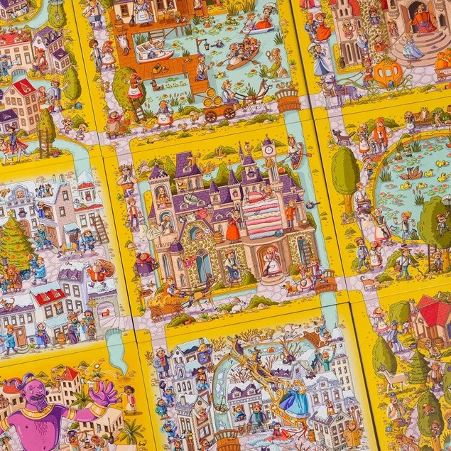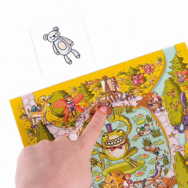 Każda plansza reprezentuje inną baśń. Gracze będą wytężać wzrok na rzece, w której rybak odnalazł Złotą Rybkę, pod opasłym cielskiem Smoka Wawelskiego, w stawie, po którym pływa Brzydkie Kaczątko czy w domkach Trzech Świnek. Ta rodzinna gra na spostrzegawczość zachwyca przepięknymi ilustracjami znanej i lubianej Nikoli Kucharskiej. Kilka trybów rozgrywki zapewni wszystkim członkom rodziny dużo dobrej zabawy przez wiele godzin.