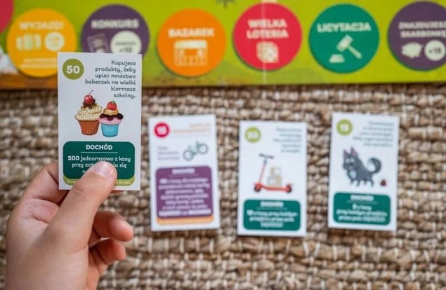 Gracze główkują, co może przynieść im dochód. Chwilowa pożyczka, aby kupić hulajnogę i zarobić na rozwożeniu paczek sąsiadom? Sprzedaż zabawek na wyprzedaży garażowej i lokata bankowa, aby pomnożyć zarobione pieniądze? Czasem warto oszczędzać, a czasem inwestować.