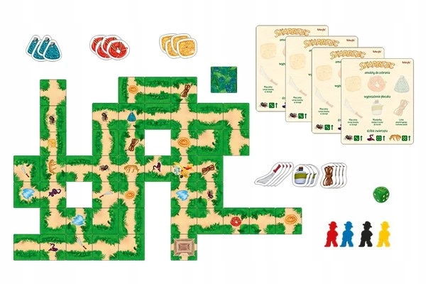 GRA PRZYGODOWA SKARBIEC KUKURYKUGRA PRZYGODOWA SKARBIEC KUKURYKUCzeka na Was niesamowita przygoda wśród dzikiej przyrody. Wyruszycie do serca dżungli, gdzie stanie wam na przeszkodzie wiele niebezpieczeństw: pająki, węże, pantery, ruchome piaski oraz inni poszukiwacze. Szukajcie wśród labiryntu ścieżek pomocnych przedmiotów oraz amuletów, bo tylko dzięki nim ktoś z Was zostanie wpuszczony do ukrytego w głębi buszu Skarbca. Zestaw zawiera: