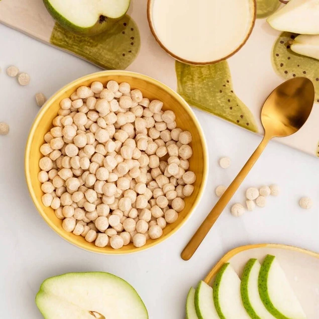 Nasze płatki świetnie smakują z dodatkiem mleka, napojów roślinnych lub jako samodzielna przekąska do chrupania. Można też posypać nimi kaszkę.