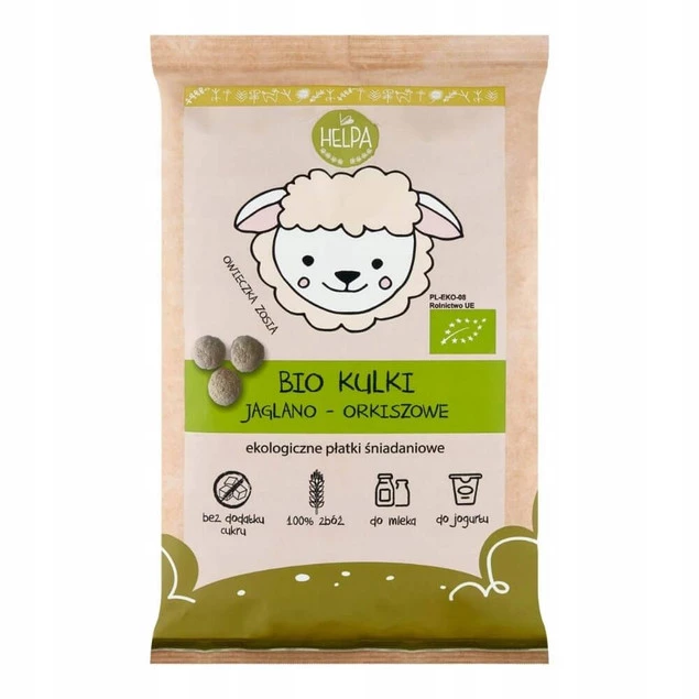 Cześć! Nazywam się owieczka Zosia. Przedstawiam Wam mój przysmak - BIO KULKI JAGLANO-ORKISZOWE. To ekologiczne płatki śniadaniowe bez dodatku cukru i danych innych dodatków. To po prostu 100% zbóż - nic więcej! BIO KULKI są idealnie chrupiące, pełnoziarniste i puchate (jak ja!). Mają delikatny smak prosa i orkiszu. Nadają się idealnie do mleka, jogurtu lub jako samodzielna przekąska.