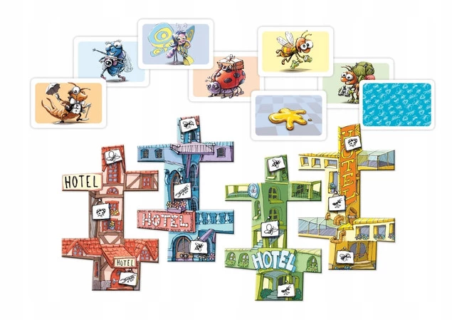• 72 karty, w tym: 20 kart miodu, 8 kart pająków, 8 kart karaluchów, 36 owadzich turystów (pszczoły, mrówki, muchy, biedronki, motyle i skorki)