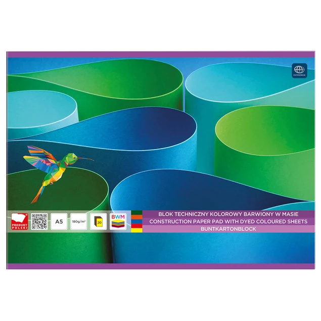INTERDRUK BLOK TECHNICZNY KOLOROWY A5 20 kartek, barwiony w masie