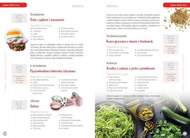 Z tą książką bez wysiłku wdrożysz w życie optymalne dla zdrowia nawyki żywieniowe i opanujesz zasady prawidłowego komponowania posiłków. Dowiesz się, czym jest indeks glikemiczny i dlaczego warto jeść potrawy o niskim IG. Książka zawiera obszerny zbiór inspirujących przepisów, dzięki którym można samodzielnie komponować codzienne posiłki, a także gotowe jadłospisy tygodniowe zgodne z założeniami diet 1500 kcal, 2000 kcal oraz 2500 kcal.
