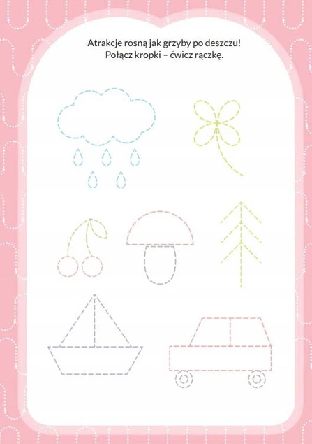 Barwna i urocza książeczka w przyjazny sposób zachęci do ćwiczeń i wprawi rączkę do pięknego, poprawnego pisania. Wesołe rysunki i wzorkowo-obrazkowe zabawy zaś staną się wspaniałą atrakcją i miłą rozgrzewką.