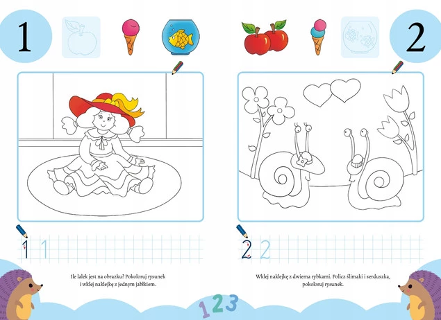 Idealna pozycja na początek! Dziecko poznaje cyferki, doskonali umiejętność pięknego i poprawnego pisania, a także rozwiązuje proste działania na obrazkach. Ponadto rozwija sprawności manualne i intelektualne, kolorując, naklejając i główkując.